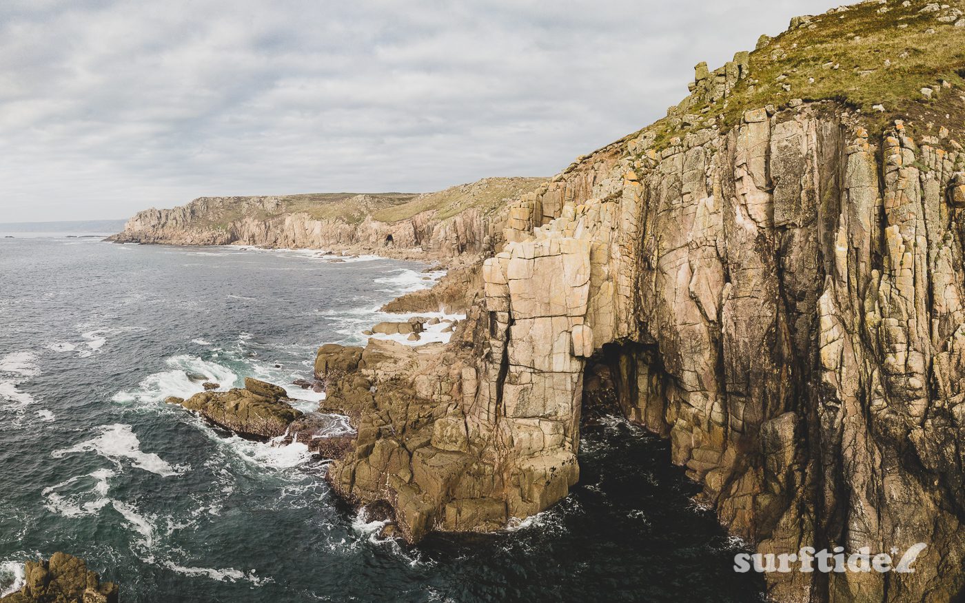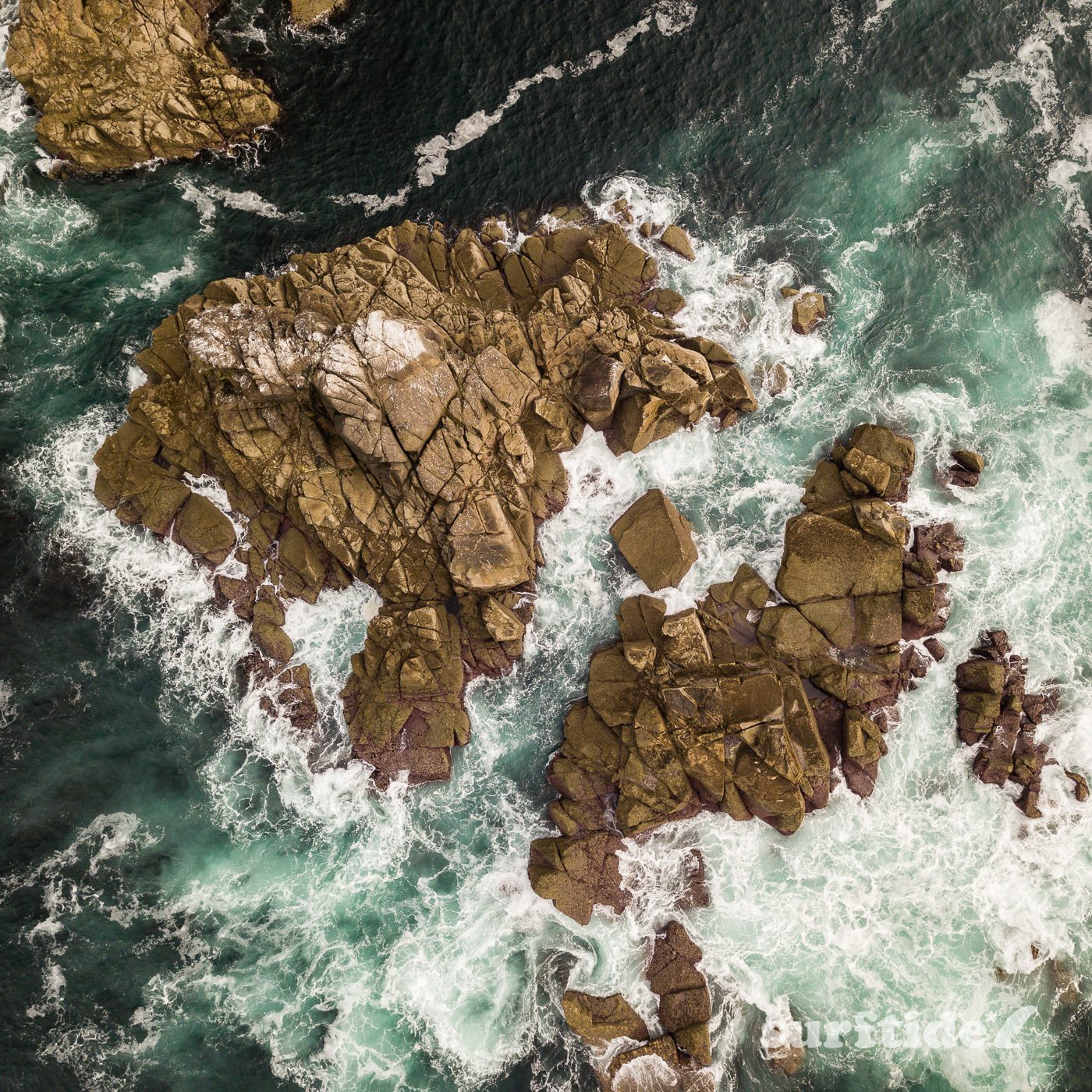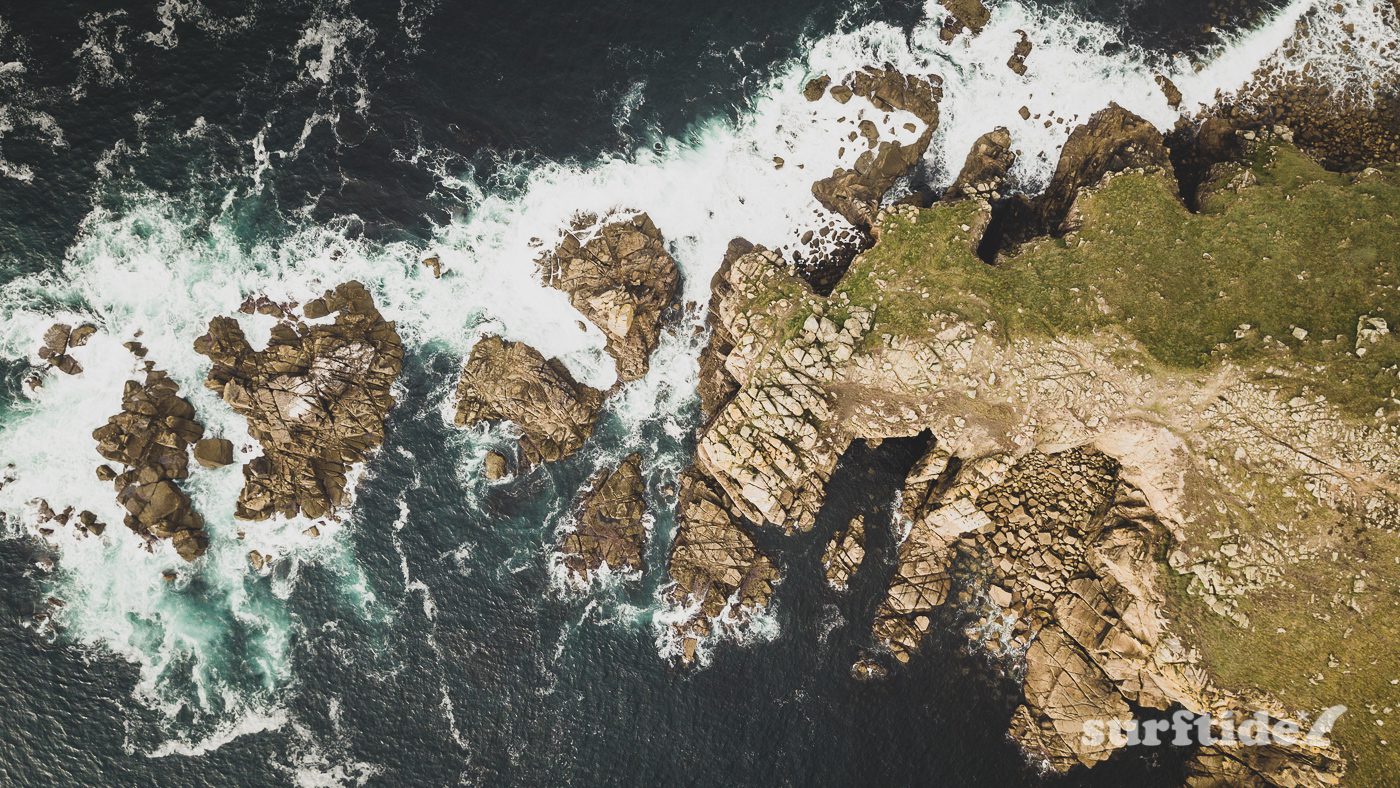 An aerial view of the tip of Land’s End headland. Shot straight down to capture the energy and drama of this magnificent stretch of coastline in South West Cornwall. Shot using a DJI Mavic Pro Drone.