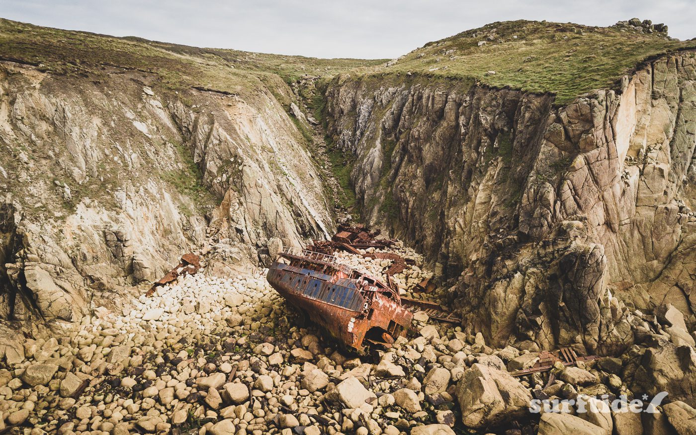 The rusting remains of RMS Mulheim, a German cargo ship that was shipwrecked at Land’s End on 22 March 2003.