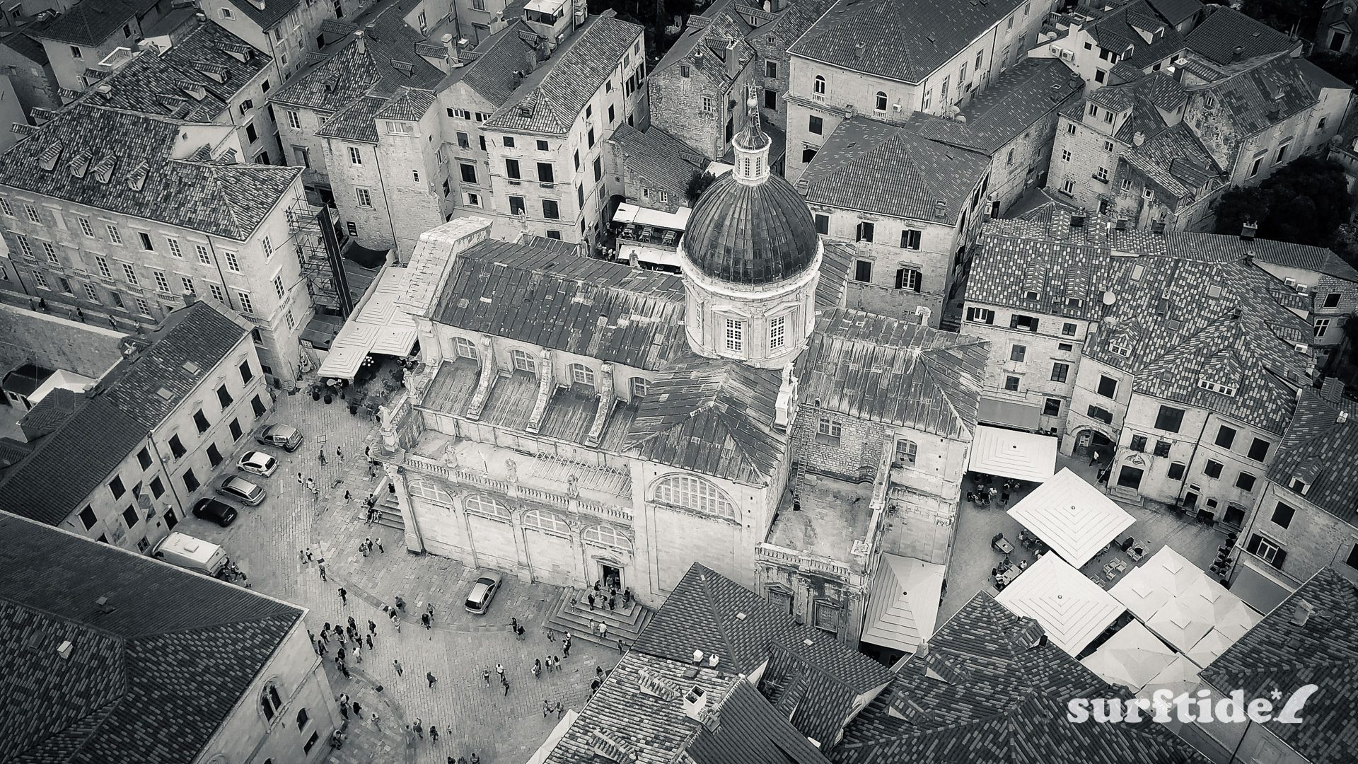 Black & White Aerial View of Dubrovnik Cathedral – Preview